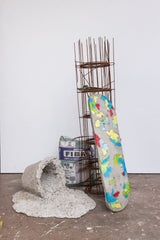 Benjamin SABATIER’s limited collection with THE SKATEROOM manifests clearly the critical issue between the concrete material, tertiary activity and the practice of skateboarding. The artist used concrete to produce skateboard art decks which humorously reconsider questions of social utopias and the failures of modernity, which are often present in his work.