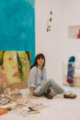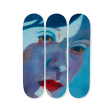 Inés favours self-portrait, exploring the human body with a lot of poetry and a lot of colour. Revered as a ‘sensitive artist’, her world often moves beyond painting. Inès has been working on face close-ups for years, finding them particularly beautiful in their scratched treatment, as they will appear on the skateboards. It is here, as with THE SKATEROOM, Inès’ work as an illustrator comes to life through creative collaborations with carefully chosen partners.
