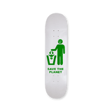 Under the image, we see “SAVE THE PLANET” written in bold letters. Although not specifically stated by the artist, the message may be a nod to issues such as global overpopulation, exploitation of natural resources and cruelty of mankind that’s passed on from generation to generation. Ultimately, it’s for the viewer to decide.