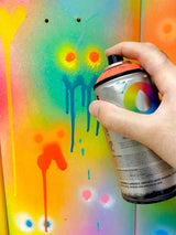 The solo edition presents a smiling hot dog – a lovable take on the form of a skateboard deck. The triptych on the other hand, is a technical nod to the creator’s fine art practice to communicate a variety of complex feelings. The design of the triptych has also been used to create three outstanding original artworks, which were personally spray painted and hand-signed by the artist.