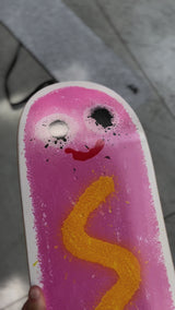 In this colorful solo edition, Jon BURGERMAN plays with the form of a skateboard deck. When you think about it, it really is shaped like a hot dog.